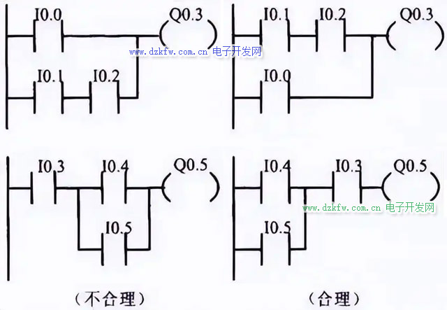 (3)幾個串聯支路相并聯,應將觸點多的支路安排在上面;幾個并聯回路的串聯,應將并聯支路數多的安排在左面。按此規則編制的梯形圖可減少用戶程序步數,縮短程序掃描時間。