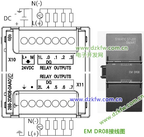 圖3 EM DR08接線圖,西門子EM DR08數字量輸出模塊8路繼電器輸出