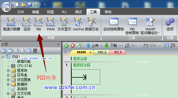 PID向導編程組態(tài)步驟:1.在Micro/WIN SMART中的工具菜單中選擇PID向導: