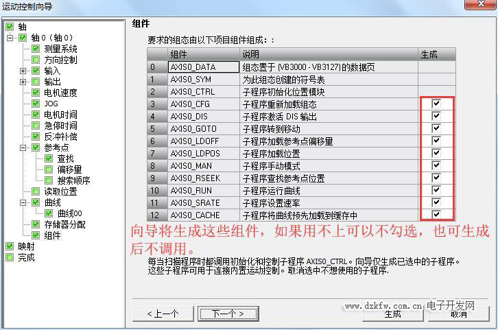 至此向?qū)ЫM態(tài)完成,點擊生成即可自動生成所需的運動子程序,后續(xù)只要調(diào)用相應(yīng)的子程序編程即可。