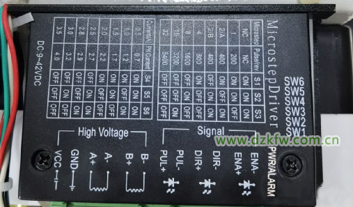 額定電流:額定電流是1.2A,根據1.2A可在步進驅動器上撥碼SW4、SW5、SW6分別為:ON、OFF、ON