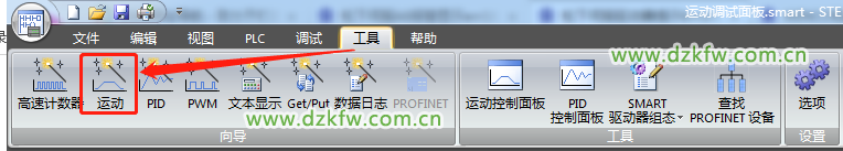 第一步:(STEP 7-MicroWIN SMART編程軟件—左上角菜單欄—工具—運動)