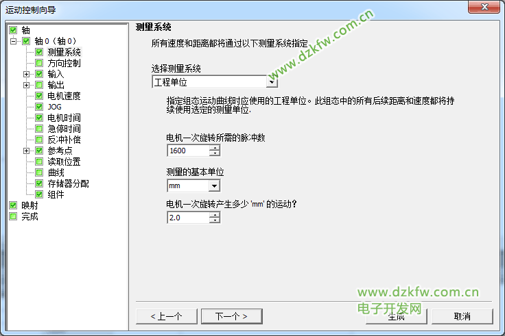 第四步:(測量系統單位—工程單位—電機一次旋轉需要的脈沖數1600—測量的基本單位—MM—電機一次旋轉產生多少距離的運動—2.0)