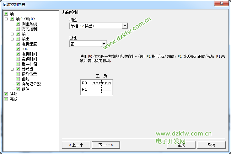 第五步:(方向控制—相位—單相2輸出—極性—正)