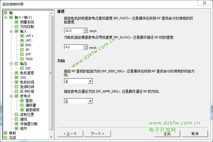 第十一步:(速度—回原點速度—10.0MM每秒—接近參考點速度—4.0—方向都是正)