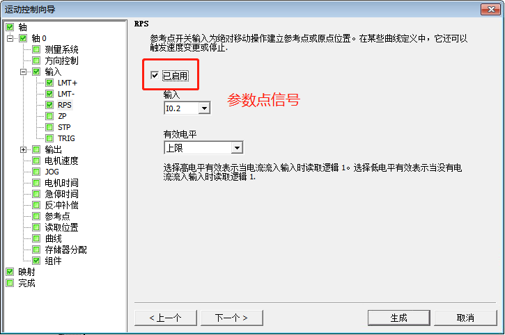 AXIS0_RSEEK:搜尋參考點子例程。按照向導中組態的搜尋速度和搜尋模式搜尋RPS建立參考點。