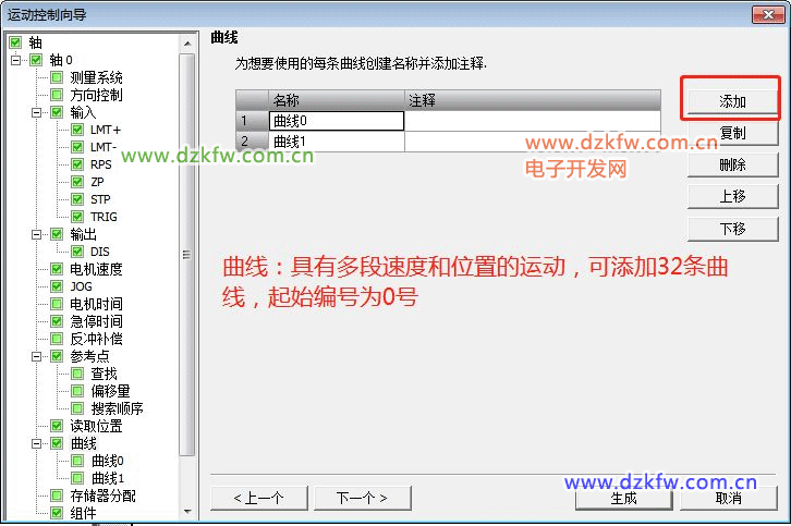 AXIS0_RUN:多段定量曲線子例程。調用向導中組態的曲線運動。