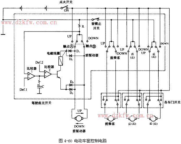 汽車電路,電動門窗玻璃升降器電路原理圖