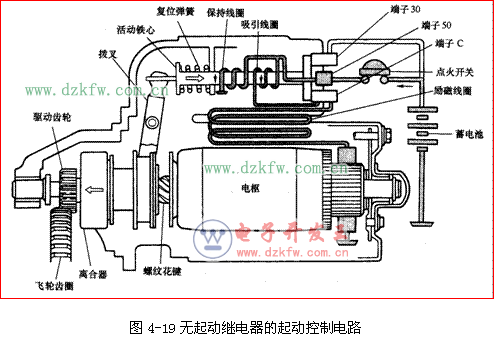 起動繼電器停止工作,觸點張開。電動機開關斷開,驅(qū)動齒輪和飛輪分離。