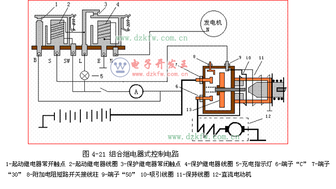 為了防止發(fā)動機起動以后起動電路再次接通,一些起動電路中安裝了帶有保護功能的組合式繼電器。