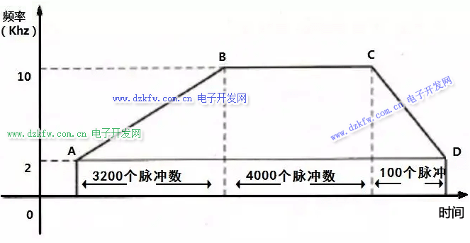 2)確認包絡表首地址,向包絡表里寫入每段的脈沖數,初始頻率和終止頻率。