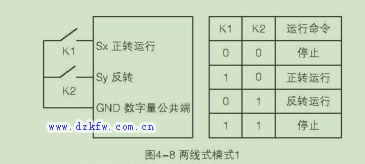 P5.11=1二線制模式;運行/換向(端子啟停)