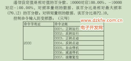 眾辰變頻器如果采用通信控制啟停即P0.02=2時,控制命令: