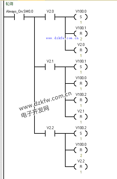 PLC中地址為:變頻器的地址如2000H轉換為10進制數再加40001,即8192(2000H)+40001=48193,所以命令地址為48193。寫入“1”變頻器正轉;寫入“2”變頻器反轉;寫入“5”變頻器自由停機。