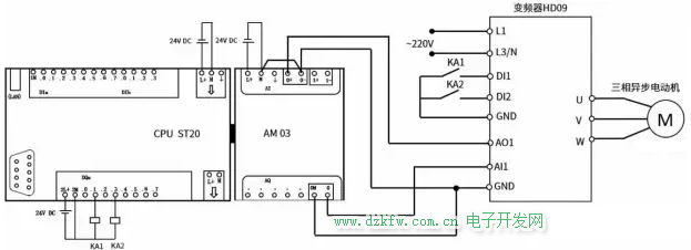 關(guān)于接線部分(參考圖 3),AO1 和 GND 端子承擔(dān)著模擬量控制變頻器的關(guān)鍵作用,通過這兩個端子傳輸?shù)哪M信號,能夠精準(zhǔn)調(diào)節(jié)變頻器的運行參數(shù)。