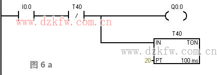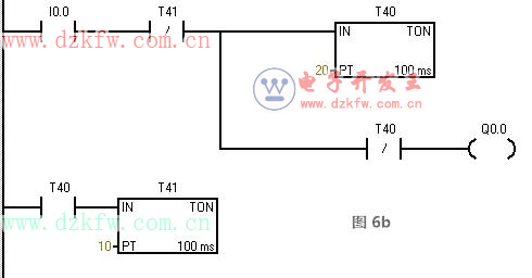 這個電路不管其他信號如何,I0.0一通電,它就開始工作,通斷的時間值可以根據需要任意設定。圖6b為 一個通2s、斷1 s的閃爍電路控制梯形圖。