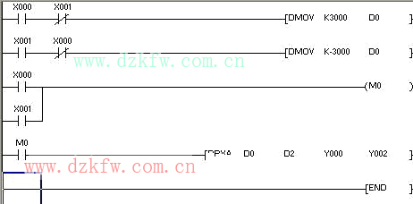 ·當機械停在A點時,再閉合X0,因為機械已經在距離原點3000的位置上,故而機械沒有動作! ·把程序中的絕對位置指令(DRVA)換成相對位置指令(DRVI):