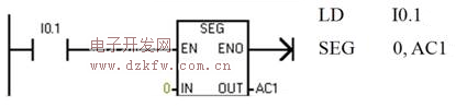 編寫顯示數字0的七段顯示碼的程序。梯形圖程序實現如圖1所示。