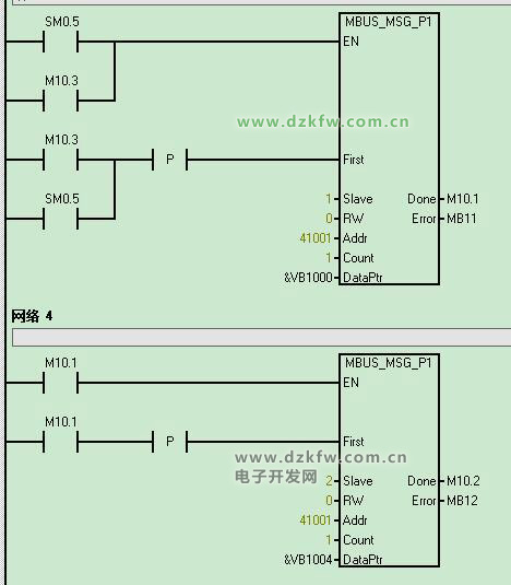 一開始打算觸摸屏多余的串口轉485直接連接溫度表,后來由于一直通信不上,懷疑觸摸屏的問題,于是打算用plc來讀取pid表,走的是modbus協議,即port1接三臺pid表,port0用來連觸摸屏以及下載程序。好了,直接上代碼。