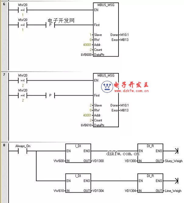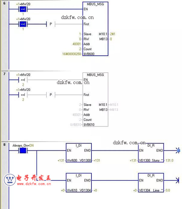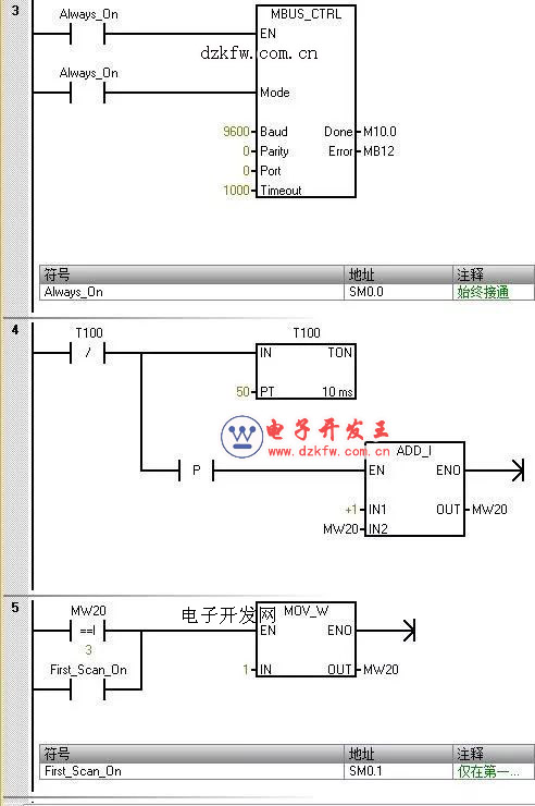 西門子plc兩個(gè)儀表輪詢?cè)L問(wèn)梯形圖實(shí)例