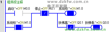 第一步:(電梯啟動后,Q0.0線圈得電,電梯以低速運行,用高速的狀態(tài)控制低速的輸出當高速運行時低速斷開)