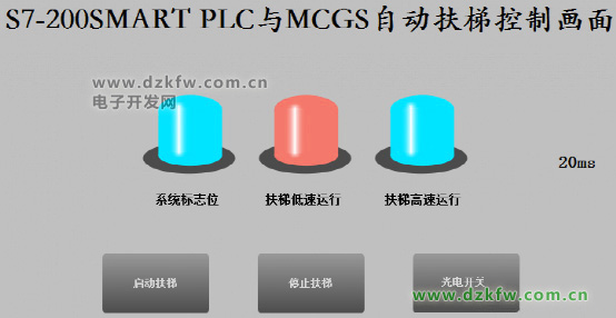 我們在各大商場中,經(jīng)常看到電梯有兩種速度,低速和高速,在無人乘坐電梯的時候,使用低速,當有人乘坐電梯,使用高速,以達到節(jié)能的目的。在本程序設計中使用昆侖通態(tài)MCGS觸摸屏進行關(guān)聯(lián)其中M0.0為啟動電梯,M0.1停止電梯,M0.2光電感應開關(guān)(感應是否有人員乘坐電梯),光電開關(guān)檢測到有人員乘坐電梯時,啟用高速運行,10S 內(nèi)無人員再次乘坐電梯。那么電梯自動從高速切換到低速。