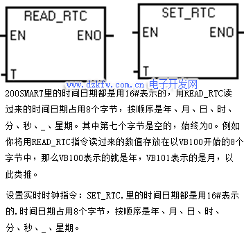 ①讀取時(shí)鐘指令:當(dāng)指令EN端條件滿足時(shí)讀取實(shí)時(shí)時(shí)鐘指令從CPU 讀取當(dāng)前時(shí)間和日期,并將其裝載到從字節(jié)地址T 開始的 8字節(jié)時(shí)間緩沖區(qū)中。