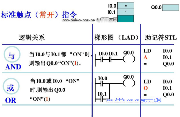 基本邏輯指令以位邏輯操作為主,在位邏輯指令中,除非有特殊說明,操作數的有效區域為:I、Q、M、SM、T、C、V、S、L且數據類型為BOOL觸點和線圈指令又分為:標準指令、立即指令、取反指令、正(負)跳變指令。