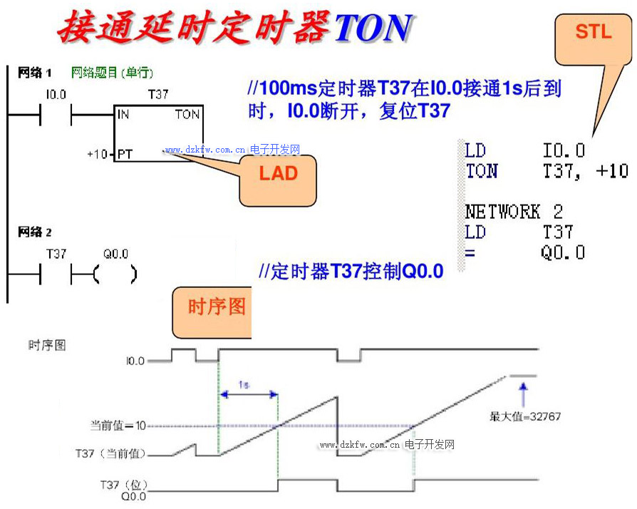包括:接通延時定時器(TON)、有記憶的接通延時(保持型)定時器(TONR)、斷開延時定時器(TOF)。S7-200有256個定時器(T0~T255)。