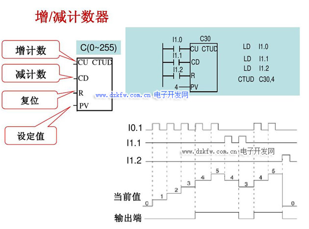 包括:加計數CTU、減計數CTD和加/減計數CTUD總共有256個(C0~C255)。計數器是對PLC內部的時鐘脈沖進行計數,而計數器是對外部的或由程序產生的計數脈沖進行計數。計數器累計計數的當前值(16位有符號整數),它存放在計數器的16位(bit)當前值寄存器中。