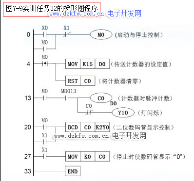 ⑵用按鈕SB1作燈閃爍起動控制,用按鈕SB2作燈熄滅控制,當(dāng)燈熄滅后數(shù)碼管顯示為“0”。