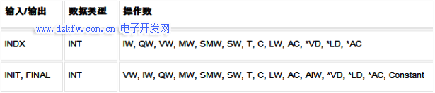 使能輸入EN有效,循環體開始執行,執行到NEXT指令時返回,每執行一次循環體,當前值計數器INDX增1,達到終止值FINAL時,循環結束。