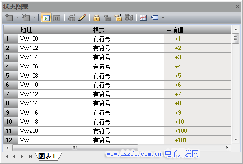 從VW100開始的100字分別為VW100-VW298寫入1-100數字。