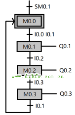 我們以初始狀態步M0.0為例,如果步M0.0要實現轉換,必須滿足兩個條件。