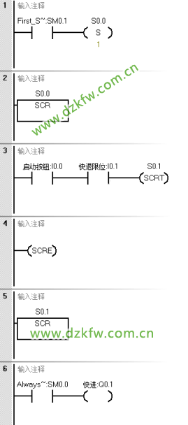 寫程序的時候注意在SCR段中,用轉移條件對應的觸點驅動SCRT指令即可實現轉移到下一個狀態步。