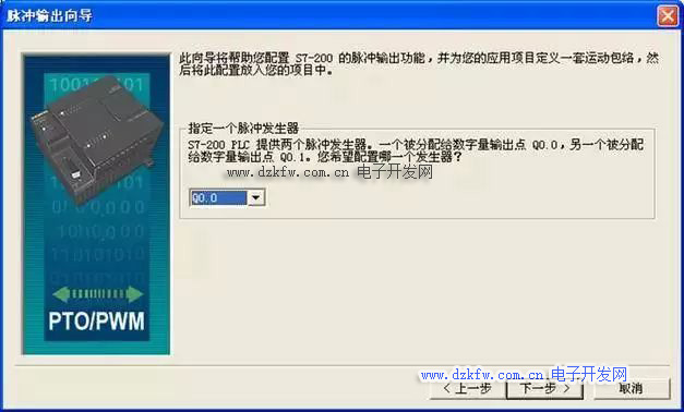 (3)選擇“線性脈沖串輸出(PTO)”,單擊“下一步”。