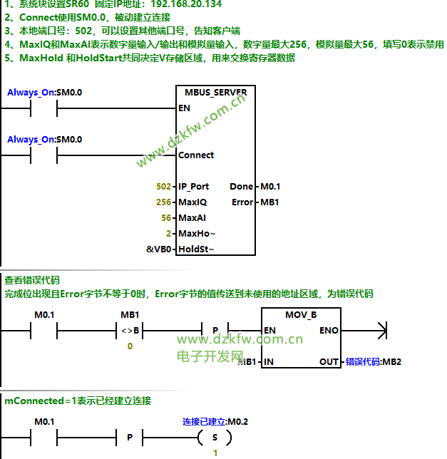 控制要求:使用MODBUS TCP通信進行兩臺PLC之間的數據交換