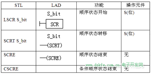 西門子S7-200系列PLC的順序控制指令如下表所示: