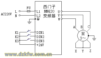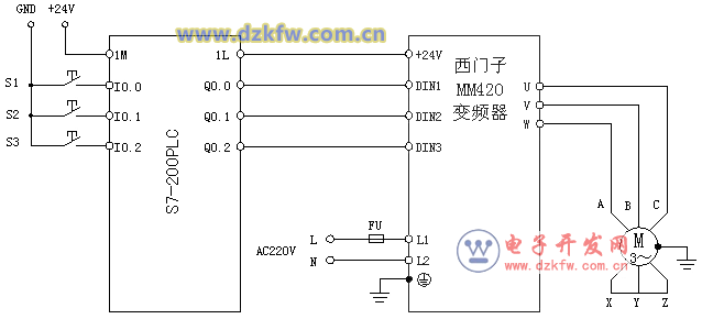 2. 西門子S7-200PLC和西門子MM420變頻器外部接線圖