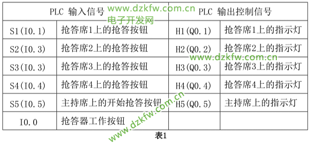 搶答器的PLC控制系統的I/0端口如下表1所示: