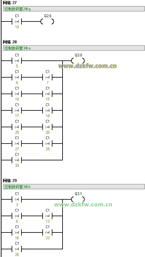OW<= C1, 10 = Q2.0 Network 23 LDN I1.1 = Q2.1 Network 24 LDW<= C1, 0 OW>= C1, 11 = Q2.2 Network 25 LDW<= C1, 10 OW>= C1, 21 = Q2.3 Network 26 LDW>= C1, 1 AW<= C1, 10 OW>= C1, 21 = Q2.4 Network 27 LDW>= C1, 21 = Q2.5 Network 28 LDW<= C1, 10 = Q2.6 Network 29 LDW<= C1, 5 LDW<= C1, 8 AW>= C1, 7