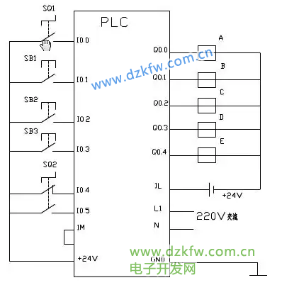PLC外部接線圖的輸入輸出設備、負載電源的類型等設計就結合系統的控制要求來設定。其控制接線圖如下圖所示: