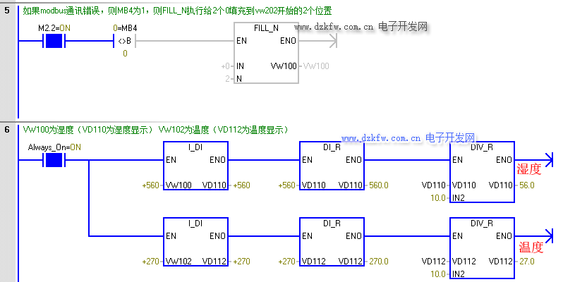 // VW100為濕度(VD110為濕度顯示) VW102為溫度(VD112為溫度顯示)