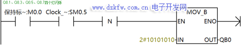 第三步:(通過中間變量M0.0接通SM0.5外加下降沿傳送二進制1010 1010至QB0)
