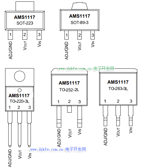AMS1117有固定和可調兩個版本可用,輸出電壓可以是:1.2V,1.5V,1.8V,2.5V,2.85V, 3.0V,3.3V,和5.0V。片內過熱切斷電路提供了過載和過熱保護,以防環境溫度造成過高的結溫。