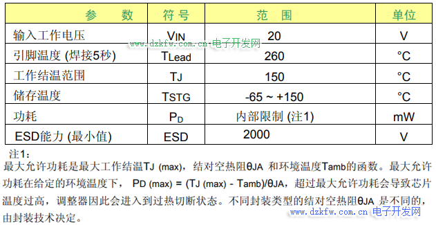 固定輸出電壓為1.5V、1.8V、2.5V、2.85V、3.0V、3.3V、5.0V和可調版本,具有1%的精度*