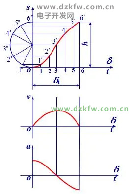 適用場合:中速中載。當(dāng)從動件作無停歇的升--降--升連續(xù)運(yùn)動時,加速度曲線變成連續(xù)曲線,可用于高速場合。