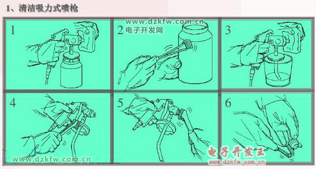 5)重復步驟(2)、(3)、(4)直至噴出的稀釋劑中不含有任何涂料。然后用毛刷清潔噴槍外部。