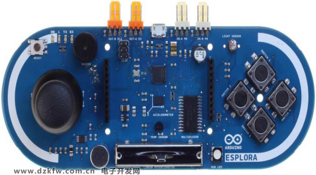 ArduinoEsplora是一款由ATmega32u4供電的微控制器板卡,以ArduinoLeonardo為基礎開發而成。此款板卡專為不具備電子學應用基礎且想直接使用Arduino的創客和DIY愛好者而設計。