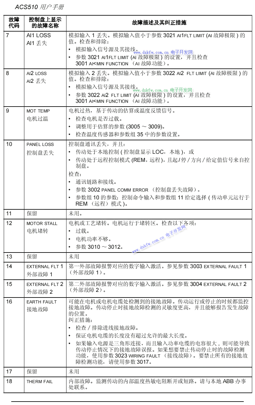 ACS510系列故障代碼大全:
